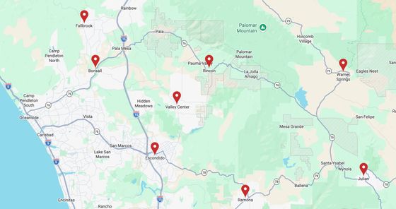 the cities and towns we serve in San Diego county
